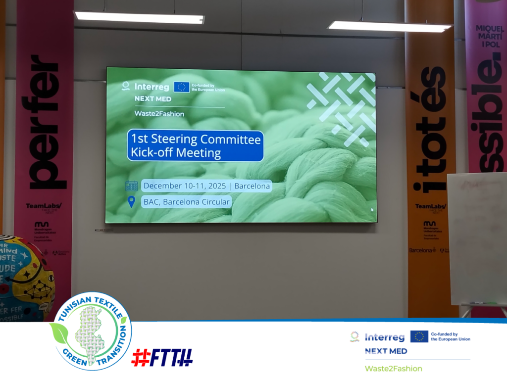 La Fédération Tunisienne du Textile et de l’Habillement (FTTH), en tant que partenaire officiel du projet Waste2Fashion, a participé au Kick-off Meeting tenu les 10 et 11 décembre en Espagne. Cette rencontre a réuni les partenaires méditerranéens issus de l’Espagne, de l’Italie, de l’Égypte, du Liban et de la Tunisie, afin d’aligner la vision commune et de lancer les premières étapes de mise en œuvre du projet.